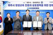코리아타임뉴스 윤광희 기자 | 파주시는 지난 11일 연세대학교 미래교육원과 ‘일생일대 프로젝트’의 공동 기획·운영을 위한 평생교육 진흥 업무협약(MOU)을 체결하고, 2026년 사업 확대를 위한 협력 체계를 본격 가동했다. 이번 협약은 파주시의 대표적인 대학 연계 평생학습 사업인 ‘일생일대 프로젝트’를 보다 체계적이고 지속 가능하게 추진하기 위한 협력 기반을 마련하기 위한 것으로, 시민 생활권 내에서 명문 대학의 고품격 교육을 누릴 수 있는 학습 환경 조성을 목표로 한다. ‘일생일대 프로젝트’는 하나의 읍면동 평생학습센터와 하나의 대학을 1대 1로 연계해, 시민들에게 생활권 내 학습 기회를 제공하는 경기도 최초의 파주형 평생학습 모델이다. 연세대학교(미래교육원)은 이번 협약을 통해 대학이 보유한 전문성과 교육 자원을 활용해 파주시민을 위한 특화 교육과정을 설계·운영할 예정이다. 이날 협약식에서 오석영 연세대학교 미래교육원장은 “연세대학교 미래교육원은 지역사회와 함께하는 평생교육을 꾸준히 실천해 왔다”라며 “이번 협약을 통해 파주 시민에게 실질적이고 의미 있는 학습 기회를 제공하고, 대학이 가진 지식과 인적 자원