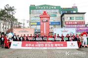 코리아타임뉴스 윤광희 기자 | 파주시는 지난 10일 금촌역 광장에서 사랑의 온도탑 100도시(℃)를 향한 힘찬 외침과 함께 ‘사랑의 온도탑’제막식을 개최했다고 밝혔다. 이번 행사는 ‘희망2026 나눔캠페인’(2025. 12. 1.~2026. 1. 31.)의 시작을 알리고 시민들의 기부 참여를 독려하기 위해 마련됐다. ‘희망2026 나눔캠페인’은 ‘행복을 더하는 기부, 기부로 바꾸는 파주’라는 표어 아래 이달부터 내년 1월 말까지 62일간 진행된다. 올해 사랑의 온도탑 모금 목표액은 11억 원으로, 모금 목표액의 1%(1,100만 원)가 모금될 때마다 온도탑도 1도시(℃)씩 올라간다. 이날 제막식에서는 ㈜비.엘.아이 서경아 대표의 파주시 ‘제26호 아너소사이어티’가입식도 함께 진행됐다. 또한, 아너소사이어티 회원들과 파주상공회의소, 사회복지기관, 읍면동 지역사회보장협의체 등 여러 단체에서 참여해 나눔 문화 확산에 동참하는 의지를 나타냈다. 김경일 파주시장은 “사랑의 온도탑은 ‘우리 곁에는 언제나 사랑과 나눔을 실천하는 이웃이 있다’라는 내용을 전하는 상징으로, 온도가 올라갈수록 마음의 온기가 느껴지고