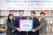 코리아타임뉴스 윤광희 기자 | 양주시사회적경제지원센터가 2025년 사회적경제 나눔장터 기버마켓을 통해 조성된 '기버함' 수익금 363만 원을 지역사회 이웃돕기 성금으로 기탁하며 나눔 문화 확산에 앞장섰다. 성금 기탁식은 10일 오후 2시에 시장실에서 열렸으며, 김도웅 경제문화체육국장, 정미순 지역경제과장, 염일열 사회적경제지원센터장, 최화자 사회적경제협의회 회장, 이정주 자원봉사센터장, 전수경 사무국장 등 관계자 11명이 참석했다. 이번에 기탁된 363만 원은 올해 기버마켓 운영 과정에서 사회적경제기업과 참여 시민들의 자발적 기부로 마련된 금액이다. 수익금은 양주시자원봉사센터에 지정 기탁돼 지역 내 취약계층 지원 사업에 쓰일 예정이다. 염일열 센터장은 “기버마켓이 지역 사회와 사회적경제 조직을 연결하는 의미 있는 플랫폼으로 자리잡고 있다”며 “앞으로도 나눔 활동이 지속될 수 있도록 협력해 나가겠다”고 말했다. 양주시 관계자는 “기부에 동참해 준 사회적경제기업과 시민 여러분께 감사드린다”며 “전달된 성금은 도움이 필요한 가정과 복지 사각지대 해소를 위해 사용될 예정”이라고 전했다.