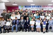 코리아타임뉴스 윤광희 기자 | 새마을문고양주시지부가 최근 양주시청 대회의실에서 ‘제23회 양주시장기 시민독서경진대회’ 시상식을 성황리에 개최했다. 이날 시상식에는 강수현 양주시장, 윤창철 양주시의회의장, 임정모 동두천양주교육지원청 교육장, 권용주 심사위원장, 권중진 양주시새마을회장, 이종용 새마을지도자양주시협의회장, 김경란 양주시새마을부녀회장 등 주요 내빈과 새마을문고 임원 및 지도자, 수상자와 가족 등 100여 명이 참석해 자리를 빛냈다. 이번 대회는 제45회 대통령기 국민독서경진 양주시 예선대회와 병행하여 진행됐으며, 개인부문 최우수상은 ▲문재희(주원초) ▲용예솔(만송초) ▲임라희(유정글로벌) ▲김나윤(경민고) ▲김혜진(일반부) ▲연성호 하사(특별부) ▲정서후(편지글 학생부) ▲김승자(편지글 일반부) ▲김서율(시화 학생부) ▲이상미(시화 일반부)가 각각 수상의 영예를 안았다. 오경옥 회장은 대회사에서 '책 읽는 우리는 아릅답다' 라는 주제로 책을 읽고 쓰고 전달하고. 함께 생각을 나누다 보면 세상을 바라보는 따뜻한 눈을 가질 수 있다고 말하며 “독서는 문화의 기본인 만큼 함께 읽고, 쓰고, 나누는 사회적