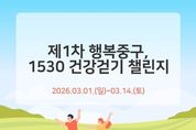 코리아타임뉴스 의료보건팀 | 부산 중구는 관내 중구민과 직장인을 대상으로 3월 1일부터 3월 14일까지 걷기 앱 워크온을 활용한‘제1차 행복 중구, 1530 건강걷기 챌린지’를 운영한다 참여자들의 걷기 실천을 위한 본 챌린지는 시간과 장소 제약 없이 워크온 앱이 설치된 휴대폰을 지참한 후 기간 내 70,000보 걷기를 목표로 하고 있으며, 목표 달성 시 추첨을 통해 소정의 상품을 제공할 예정이다. ‘제1차 행복중구, 1530 건강걷기 챌린지’는 2월 23일부터 사전 예약을 시작하며 참여를 희망하는 주민은 스마트폰에서 워크온 앱을 설치하고 부산 중구보건소 커뮤니티 가입, 챌린지 메뉴 ‘예약하기’또는‘참여하기’버튼을 누르면 참여가 가능하다. 자세한 사항은 워크온 챌린지 게시판을 참고하거나 중구 보건소로 문의하면 된다.