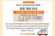 코리아타임뉴스 의료보건팀 | 여수시는 여수중앙병원이 운영 중인 ‘여수시 공공심야어린이병원’이 병원 내부 사정으로 인해 당초 계획보다 앞당겨 2025년 12월 1일부터 운영을 종료한다고 밝혔다. 여수시 공공심야어린이병원은 야간·심야 및 휴일에 발생하는 경증 소아 환자 진료 공백을 해소하기 위해 2024년부터 운영돼왔으며 응급실이 아닌 외래 기반의 진료를 제공하며 지역 부모들로부터 큰 호응을 받았다. 그동안 공공심야어린이병원은 총 6,074명의 소아 환자에게 진료를 제공하며 ▲진료비 부담 경감 ▲진료 접근성 향상 ▲소아 심야 의료 공백 해소 등에 중요한 역할을 해왔다. 이번 운영 종료로 단기적으로는 야간 소아 진료 공백이 불가피할 것으로 예상된다. 시는 시민 불편을 최소화하기 위해 지역 종합병원 응급실 중심의 24시간 소아 진료 안내를 강화하고 관내 소아과 운영 의료기관과 지속적으로 협의하는 등 대체 진료체계 마련을 위한 다양한 방안을 검토하고 있다. 여수시는 향후 심야·휴일 소야 진료 공백이 발생하지 않도록 안정적인 야간 소아 진료체계 구축에 최선을 다할 계획이다. 시 관계자는 “여수시
