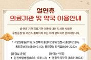 코리아타임뉴스 의료보건팀 | 옹진군은 설 연휴 기간인 2월 14일부터 2월 18일까지 5일간, 의료공백을 최소화하고 응급환자 발생에 신속히 대응하기 위해 '설 연휴 응급진료체계'를 운영한다고 밝혔다. 군은 연휴 기간 중 보건소 내 ‘응급진료상황실’을 설치·운영하고, 지역응급의료기관을 중심으로 24시간 비상진료체계를 유지한다. 특히 연육되지 않은 도서지역 특성을 고려하여 보건지소·보건진료소와 유관기관 간 긴밀한 협력체계를 유지할 방침이다. 보건소는 연휴 기간 응급환자 발생 상황을 총괄 관리하며, 관내 보건지소 8개소와 보건진료소 11개소는 응급환자 진료 및 이송을 지원한다. 휴진이 발생할 경우 관할 보건지소 및 유관기관과 연계한 응급환자 이송체계를 가동해 업무 공백을 최소화할 계획이다. 또한, 백령병원(인천광역시의료원 백령병원)은 지역응급의료기관으로서 24시간 비상진료체계를 유지하며, 문 여는 병·의원 및 약국 7개소도 연휴 기간 주민 진료 편의를 지원한다. 군은 재난 및 다수사상자 발생 상황에도 대비해 119 등 관계기관과 협력체계를 유지하고, 신속 대응이 가능하도록 비상