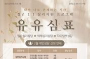 코리아타임뉴스 의료보건팀 | 부평구 청년공간 유유기지 부평은 청년 마음 건강 회복을 위한 심리지원 프로그램 ‘유유심(心)표’의 2월 참여자를 모집한다. 모집은 집단상담의 경우 오는 13일까지, 개인상담은 27일까지 진행된다. ‘유유심(心)표’는 전문 상담가와 함께하는 청년 맞춤형 심리지원 프로그램으로, 심리적 어려움을 겪는 청년들이 건강한 마음을 회복하고 일상 속 자신만의 쉼표를 찾을 수 있도록 돕는다. 프로그램은 개인상담과 집단상담으로 나뉘어 운영된다. 개인상담은 ▲일반심리상담(2월 23~24일) ▲색채심리상담(2월 27일) ▲자기탐색상담(2월 28일)으로 구성된다. 집단상담인 ‘나 프로젝트’는 자기이해를 주제로 2월 20일에 진행된다. 참여를 희망하는 청년(만 19세~39세)은 유유기지 부평 누리집을 통해 신청할 수 있으며, 자세한 사항은 전화로 문의하면 된다. 유유기지 부평 관계자는 “‘유유심(心)표’는 다양한 심리적 어려움을 겪는 청년들이 유형별 심리검사와 종합 상담을 통해 자신의 내면에 집중하고 정서적 연대감을 쌓을 수 있도록 돕는 프로그램”이라며, “전문 상담가와