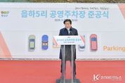 코리아타임뉴스 이아름 기자 | 횡성군은 28일 횡성읍 읍하5리에서 김명기 횡성군수, 표한상 군의회의장, 지역주민 등 100여 명이 참석한 가운데 읍하5리 공영주차장 준공식을 개최했다. 준공식에서는 사업추진 과정에 기여한 이장과 관계공무원, 시공업체에게 감사패를 전달하며 감사의 뜻을 전했다. 읍하5리 일원은 상가와 주거지가 밀집한 지역으로 주차공간 부족과 불법주정차로 인한 교통혼잡이 꾸준히 제기되어 왔다. 주민들의 지속적인 관심과 건의를 바탕으로 추진된 이번 공영주차장 조성사업에는 군비 18억 4,600만 원이 투입됐다. 이번 공영주차장은 총 42면 규모(면적 1,425㎡)로 조성됐으며, 일반 33면, 전기차 2면, 친환경차 1면, 장애인전용 2면, 경차 4면으로 다양한 이용 수요를 반영해 구성됐다. 주차장 앞 도로에는 불법주정차 단속용 CCTV 를 설치하여 주정차 단속은 2026년 1월부터 시행할 계획이다. 이를 통해 만성적인 교통혼잡 개선과 보행자 안전 강화, 주거‧상권 접근성 개선에 대하여 기여할 것으로 기대된다. 또한, 주차장 내부에는 가로등과 방범용 CCTV가 설치되어 야간 안전과 범죄 예방