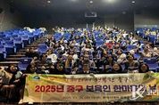 코리아타임뉴스 이아름 기자 | 부산 중구는 11월 26일 롯데시네마 광복점에서 관내 어린이집 보육인 100여명이 참석한 가운데 '2025년 중구 보육인 한마음의 날'을 개최했다. 이번 행사는 보육인 윤리선언문 낭독으로 올바른 보육실천을 다짐하고 유공 보육교사에 대한 표창을 수여하며 보육인들의 헌신과 노고를 격려하는 자리로 마련됐다. 또한 아동학대 예방 교육을 진행하여 아동 권리 보호에 대한 인식을 더욱 높이는 시간을 가졌다. 교육 이후에는 영화 관람 프로그램이 이어져 보육인들의 사기를 북돋우고 보육서비스의 질을 한층 향상시키는 뜻깊은 자리가 됐다.