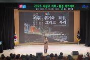 코리아타임뉴스 이아름 기자 | 부산 사상구는 11월 25일 오후 2시 사상구청 한마당홀에서 관내 주민과 공무원을 대상으로 ‘기후위기와 적응 그리고 우리’를 주제로 한 ‘2025년 사상구 기후·환경 아카데미’를 개최했다고 밝혔다. 이번 아카데미는 주민들이 기후변화의 심각성을 이해하고, 일상 속 실천 가능한 대응 방안을 모색할 수 있도록 마련된 교육 프로그램이다. 행사에서는 ▲‘하나뿐인 지구영상제’ 우수상 수상작 'Stars on the sea' 상영을 통해 기후위기에 대한 공감대를 확산하고, ▲(주)윌든 김승현 대표의 전문 강연이 이어져 교육의 몰입도를 높였다. 김승현 대표는 ‘기후위기와 적응 그리고 우리’라는 주제로 기후위기의 현주소를 설명하고, 개인과 공동체가 실천할 수 있는 구체적 적응·대응 전략을 제시했다. 참석자들은 기후위기 대응이 단순한 환경 보호를 넘어 삶의 질을 높이는 실천이라는 점에 공감하며 적극적인 참여 의지를 보였다. 조병길 사상구청장은 “이번 아카데미가 주민 스스로 탄소중립과 녹색생활을 실천하는 계기가 되기를 바란다”며 “사상구도 기후위기 적응과 지속 가능한 도시 전