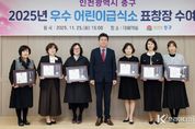 코리아타임뉴스 이아름 기자 | 인천시 중구는 올 한 해 어린이 급식환경 개선에 앞장선 모범 어린이급식소에 대한 노고를 격려하고자 지난 25일 중구 제2청 회의실에서 ‘2025년 우수 어린이급식소 표창장 수여식’을 개최했다. 이번 표창은 중구 어린이사회복지급식관리지원센터에 등록된 기관 중 2025년도 위생·안전·영양 분야 점수와 원장·교사·조리원·부모 대상 교육 참여도, 식단 모니터링 점수에서 고득점을 받은 기관을 대상으로 수여됐다. 선정된 우수급식소는 꼬마숲어린이집, 영종바다숲어린이집, 영종수자인어린이집, 오션하임어린이집, 유보라어린이집, 주주어린이집이다. 김정헌 구청장은 “아이들에게 안전한 먹거리를 제공하고자 힘쓴 모든 분에게 감사하다”라며 “앞으로도 중구어린이사회복지급식관리지원센터를 통해 어린이급식소에 대한 영양·위생 관리지원에 최선을 다하겠다”라고 밝혔다. 한편, 중구 어린이사회복지급식관리지원센터는 현재 관내 어린이급식소 115개소를 대상으로 체계적이고 철저한 위생·영양 관리와 대상별 교육 지원을 추진하며, 지역 어린이들의 건강 증진에 이바지하고 있다. 올해 하반기부터는 사회복지급