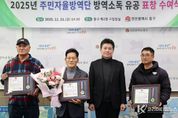 코리아타임뉴스 이아름 기자 | 김정헌 인천 중구청장이 올 한 해 구민 건강 증진과 쾌적한 환경 조성을 위해 헌신적으로 활동한 주민자율방역단 단원들에게 감사와 격려의 뜻을 전했다. 구는 이를 위해 지난 21일과 24일 각각 중구청 1청사와 2청사에서 ‘2025년 주민자율방역단 유공 표창 및 감사패 수여식’을 열고, 적극적이고 모범적인 활동을 펼친 모범 단원 총 8명에게 유공자 표창을 전달했다. 원도심에서는 신포동 권일구 단원, 신흥동 이재영 단원, 도원동 조정순 단원, 율목동 김명분 단원, 동인천동 임옥순 단원이, 영종국제도시에서는 영종1동 강현선 단장, 운서동 김후동 단원, 용유동 한태산 단원이 모범 단원으로 선정됐다. 또한, 활동 실적이 가장 뛰어나고 여름철 집중 방역 기간에 헌신적으로 활동하며 지역 주민 건강 보호에 크게 이바지한 ‘연안동 주민자율방역단’에게는 단체 부문 ‘감사패’가 수여됐다. 실제로 연안동 주민자율방역단은 하절기 핵심 방역 활동으로 주요 취약지 64개소를 중심으로 밀도 높은 방역을 정기적으로 수행하며 탁월한 성과를 보였다. 올해 관내 12개 동 주민자율방역단은 5월