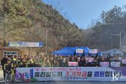 코리아타임뉴스 이아름 기자 | 홍천읍 이장협의회(회장 신교인)는 2026년 1월 28일 오전 11시 30분, 남산 입구에서 산불 없는 안전한 한 해를 기원하는 산불 예방 기원 산신제를 봉행했다. 이날 행사에서는 용문-홍천철도 조기 착공을 함께 기원했다. 이번 산신제는 홍천읍 이장협의회 주관으로 열렸으며, 이인식 홍천읍장과 직원, 홍천읍 이장, 남녀 의용소방대(대장 신상욱, 이미영) 등 40여 명이 참석해 산불 예방과 지역 주민의 안녕을 한마음으로 기원했다. 또한 참석자들은 용문-홍천 광역철도 예비타당성조사 통과를 함께 축하했으며, 사업이 조기에 착공될 수 있도록 한뜻으로 염원했다. 산신제는 예로부터 자연재해를 막고 마을의 평안을 비는 전통 제례로 전해져 왔으며, 이날 행사는 엄숙한 분위기 속에서 진행됐다. 홍천읍 이장협의회는 산불 취약 시기를 앞두고 주민 안전 의식을 다지는 자리로 의미를 더했다고 밝혔다. 신교인 홍천읍 이장협의회장은 “건조한 날씨로 산불 위험이 커지는 시기인 만큼, 산신제를 통해 산불 예방의 중요성을 다시 한번 되새기고자 했다”라며, “앞으로도 주민들과 함