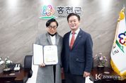 코리아타임뉴스 이아름 기자 | 강원 홍천군은 2026년 병오년 취약게층 아동도서 릴레이 25번째 기증식을 1월 13일오전10시 군수 접견실에서 개최했다. 이날 기증식에서는 횽천군 향토기업 ㈜ 금강고속 윤병훈 대표가 신영재 홍천군수에게 도서 기증금 100만원을 전달했다. 이번 행사에 신영재 군수.윤병훈 대표.이영하 상무.탁석재 상무이사.천일수 홍천소장.신아일보 조덕경 국장.김완수 경제국장.최용건 건설안전국장등 관계자등이 참석했다. 한편 ㈜금강고속은 농어촌시내버스22대중 16대는 친환경 전기버스로 전환하여 배출가스 제로에 대기오염저감과 연료비 절감으로 온실가스 감축에 이바지 하고 있다. ㈜금강고속은 1952년 6월 6일 설립으로 2026년 제73주년의 설립과 함께 ”고객 감동’을 슬로건으로 시외버스 230대와 농어촌버스 66대를 운영하며, 홍천·양평·인제군을 비롯해 동서울~상봉, 홍천, 춘천, 원주, 속초, 안산, 수원, 성남, 인천, 고양, 의정부 등 국도 44호선 주요 노선을 운행하고 있다. 특히 군인 승객에 대한 배려와 친절한 서비스로 무사고 승무원이 가장 많은 전국 최우수 중견