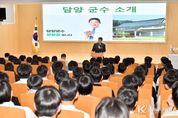 코리아타임뉴스 전남취재본부 | 담양군은 지난 27일 2025년도 신규 공무원 26명을 대상으로 군수와 함께하는 열린 대화 프로그램 ‘마주온(溫)데이’를 운영했다. 이번 ‘마주온데이’는 신규 직원들이 공직 생활 초기에 겪는 고민을 나누고 군정 방향을 듣는 시간으로 꾸려졌다. 간담회에서는 업무 절차, 조직문화, 주민 응대 등 여러 주제를 두고 자유로운 질의응답이 진행됐으며, 신규 직원들은 해동문화예술촌 등 주요 관광지를 둘러보며 담양의 관광자원과 문화적 특성을 직접 체험했다. 한 신규 직원은 “처음 접하는 행정 업무에 대해 군수님과 직접 이야기할 수 있어 많은 도움이 됐다”며 “담양의 문화와 관광자원을 체험하면서 지역사회 이해도가 높아져 앞으로의 업무에 큰 자양분이 될 것 같다”고 말했다. 정철원 담양군수는 “여러분은 담양군의 미래를 이끌어갈 소중한 인재들”이라며 “군민의 입장에서 고민하며 따뜻하고 적극적인 공직자가 되어주길 바란다”고 당부했다.