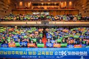코리아타임뉴스 전남취재본부 | 순천시는 전라남도와 함께 3일 순천문화예술회관에서 전남광주특별시 행정·교육 통합 도민 공청회를 개최하고, 통합 추진의 방향과 핵심 과제를 시민과 함께 논의했다. 이날 행사에는 노관규 순천시장을 비롯해, 김영록 전라남도지사, 김대중 전라남도교육감, 강형구 순천시의회 의장, 허동균 순천교육지원청 교육장, 지역 사회단체 관계자와 시민 등 1,000여 명이 참석해 전남·광주 통합에 대한 높은 관심을 보였다. 공청회는 노관규 순천시장의 환영사를 시작으로, 김영록 도지사의 전남·광주 행정통합 추진 방안 설명, 김대중 교육감의 교육 분야 통합 비전 제시, 시민과의 질의응답 순으로 진행됐다. 질의응답 시간에는 통합을 통한 시너지 효과 극대화를 위해 순천이 수행해야 할 전략적 역할과 핵심 과제가 집중적으로 논의됐다. 더불어 통합 이후 전남 서부권으로 산업·예산이 집중될 수 있다는 우려를 제기하며, 이를 상쇄할 방안들도 함께 논의됐다. 시민들은 ▲RE100 반도체 산단 순천 유치 필요성 ▲동부권 재정 쿼터제 도입 요구 ▲경전선 순천 구간 지하화 사업의 추진 현황과 전남도의 책임 있는 입장 ▲특별법안