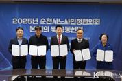 코리아타임뉴스 전남취재본부 | 순천시가 지난 22일 순천상공회의소에서 ‘2025년 순천시 노사민정협의회’를 개최하고, 지역 노동시장 현안과 향후 사업 방향을 논의했다. 이날 협의회에는 순천시장을 비롯해 노동계, 경영자단체, 시민단체 등 30여 명이 참여해 한해 성과를 공유하고, ‘고용안정 및 지속가능한 산업생태계 구축을 위한 노·사·민·정 공동선언’을 채택했다. 노·사·민·정이 함께 채택한 ‘고용안정 및 지속가능한 산업생태계 구축을 위한 공동선언문’에는 ▲계속고용제도 발굴을 통한 고용안정 및 지역 산업 경쟁력 확보 ▲산업재해로부터 안심할 수 있는 순천형 안전한 일터 만들기 등의 내용이 담겨있다. 이를 위해 지역 경제주체로서 책임과 역할을 다하며, 일류도시 순천의 지속가능한 발전을 위해 상호신뢰를 바탕으로 협력할 것을 다짐했다. 시 관계자는 “경제 여건 악화와 급격한 노동환경의 변화로 모두가 어려움을 겪고 있다”며 “이럴 때일수록 노·사·민·정이 힘을 합쳐 경제위기를 극복하고 살기 좋은 일류 순천을 만들어 나가자”고 말했다.