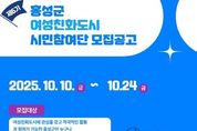 코리아타임뉴스 충남취재본부 | 홍성군이 ‘여성친화도시’ 조성을 위한 시민참여단 모집에 나섰다. 이번 모집은 남녀가 동등하게 지역 정책에 참여하여 혜택이 고루 돌아가며, 여성의 역량 강화와 돌봄·안전이 보장되는 홍성을 만들기 위한 노력의 일환으로, 시민참여단은 군민들의 다양한 의견을 정책에 반영하고, 양성평등 실현을 위한 비전을 함께 실천하는 역할을 맡게 된다. 모집 기간은 오는 24일까지이며, 홍성군에 거주하는 군민 중 양성평등과 여성친화도시에 관심 있는 사람이라면 누구나 지원할 수 있다. 모집 인원은 20명 내외로, 공개 모집을 통해 선정된다. 홍성군은 이번 시민참여단 모집을 통해 여성친화도시로서의 비전을 구체화하고, 군민 참여를 기반으로 한 실질적인 변화와 발전을 도모할 계획이다. 군 관계자는 “여성친화도시 만들기는 단순한 정책이 아니라, 군민 모두가 함께 실천하는 과정”이라며 “많은 관심과 참여를 부탁드린다”고 말했다. 한편 선정된 제6기 시민참여단은 오는 11월부터 2027년 10월까지 여성친화도시 조성과 관련한 아이디어 제안, 성별 불균형 요소 및 도시 기반시설·공공시설물에 대