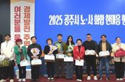 코리아타임뉴스 충남취재본부 | 공주시는 지난 5일 경복궁웨딩홀에서 ‘2025 공주시 기업인협의회 노사화합 한마음대회’를 성황리에 개최했다고 밝혔다. 공주시 기업인협의회 주관으로 열린 이날 행사에는 관내 기업인과 근로자 250여 명이 참석해 의미를 더했다. 1부 행사에서는 기업 발전과 지역경제 활성화에 기여한 기업 대표 및 모범 근로자 28명이 표창을 받았으며, 공주시 우수 중소기업으로 선정된 ㈜라미그린텍(대표 한진배·박희성) 등 8개 업체가 우수 중소기업 현판과 인증서를 수여받았다. 기업인협의회는 지역사회 나눔 실천을 위해 어려운 이웃 돕기 성금 600만 원을 기탁하고, 공주정명학교에 장학금 200만 원, 공주장애인체육회에 후원금 200만 원을 전달했다. 공주시는 취약계층 지원에 대한 관심과 헌신에 감사의 뜻을 담아 기업인협의회에 감사패를 수여했다. 이어진 2부 행사에서는 초청 가수의 축하 공연과 장기자랑이 진행되어 참석자들이 한 해 동안의 노고를 위로하고 노사 간 공감대를 형성하는 화합의 시간을 가졌다. 최원철 시장은 “공주시 발전에 중추적인 역할을 해주시는 기업인과 근로