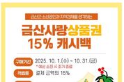 코리아타임뉴스 충남취재본부 | 금산군은 지역 상권에 활기를 불어넣기 위해 9월부터 적용한 금산사랑상품권 캐시백 적립률 15%를 10월에도 유지한다. 상품권 15% 캐시백 유지는 주민 호응과 정부의 지역사랑상품권 정책 기조를 반영해 추진하며 민족 최대 명절인 추석을 맞아 명절 선물 구입 및 제수용품을 해야 하는 주민들의 부담을 줄일 것으로 예상된다. 금산사랑상품권은 스마트폰 앱 지역상품권 착(chak)을 통해 상품권을 구매한 뒤 가맹점에서 결제하면 되며 지역 음식점·병원·학원·미용실 등 약 2900개 가맹점에서 사용할 수 있다. 캐시백 적립은 종이 상품권은 적용되지 않고 모바일·카드 상품권에서만 이뤄진다. 군 관계자는 “금산사랑상품권 캐시백 적립은 소비만 해도 혜택을 받을 수 있다”며 “지역 경제 활성화에도 도움이 되는 상품권을 많이 이용해 주시길 바란다”고 말했다.