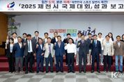 코리아타임뉴스 충북취재본부 | 제천시는 지난 1일 제천시청 5층 청풍호실에서 '2025년 제천시 국제대회'성과보고회를 개최했다. 보고회에는 김창규 제천시장, 박영기 제천시의회 의장, 김경석 대한롤러스포츠연맹 회장(이상 공동조직위원장), 장재돈 대한체조협회 고문과 안성국 제천시체육회장(집행위원장), 오재성 제천시체조협회장, 최호열 제천시롤러스포츠연맹회장(이상 공동 사무총장) 및 유관기관, 단체장 3명과 종목단체 임원 및 회원 50여 명이 참석했다. 이날 보고회는 올해 제천시에서 열린 국제대회인 '2025 기계체조 아시아선수권대회(6.1.~6.15.)'와 '2025 아시아 롤러스케이팅 선수권대회(7.19.~7.30.)'의 성공 개최를 기념하고, 대회 관계자들의 노고를 격려하며 성과를 공유하는 자리였다. 행사는 유공 기관·단체에 대한 감사패 수여와 유공자 표창 순으로 진행됐다. 제천시장 감사패는 대회 유치와 개최를 주관한 ▲대한롤러스포츠연맹(회장 김경석) ▲제천시롤러스포츠연맹(회장 최호열) ▲대한체조협회(공석) ▲제천시체조협회(회장 오재성)에 수여됐다. 또한, 두 대회를 실질적으로 준비하고 집행한 ▲제천시체육회(회장