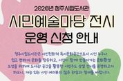코리아타임뉴스 충북취재본부 | 청주시립도서관은 시민 누구나 쉽고 편하게 문화를 향유하고 시민이 함께 만들어가는 문화환경을 조성하기 위한 ‘2026년 시민예술마당 전시’ 운영자를 모집한다고 8일 밝혔다. 시민예술마당은 도서관 1층 다목적실(276㎡)에서 도서 열람 공간과 함께 운영된다. 개인, 동아리 등 재능 있는 시민이면 누구나 참여 가능하다. 참여 시민들은 다양한 예술 작품을 타공판이 설치된 벽면과 단상 위를 활용해 작품을 전시할 수 있다. 도서관은 2026년 2월부터 12월까지 전시 공간을 제공할 계획이다. 다만, 도서관 자체 행사로 인해 2026년 9월과 10월에는 이용할 수 없다. 청주시립도서관 관계자는 “시민들이 스스로의 재능과 창작 활동을 공유하고, 도서관이 지역사회 문화 플랫폼으로 기능할 수 있도록 지속적으로 지원하겠다”며 “재능 있는 시민 여러분의 많은 참여를 바란다”고 말했다.