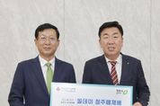 코리아타임뉴스 충북취재본부 | 흥덕구 옥산면에 위치한 골프장 올데이 청주떼제베(대표이사 최창호)는 29일 청주시청을 방문해 취약계층 지원을 위한 이웃돕기 성금 1천만원을 기탁했다. 임시청사 직지실에서 개최된 기탁식에는 이범석 청주시장, 최창호 올데이 청주떼제베 대표이사가 참석했다. 시는 올데이 청주떼제베가 기탁한 성금을 충북사회복지공동모금회를 통해 현금 지정기탁해 취약계층에게 지원할 계획이다. 최창호 대표이사는 “2024년 골프장 운영을 시작했고 올초 옥산면에서부터 기부를 시작하고 있다”며 “앞으로도 지역 복지 발전에 관심을 갖고 나눔 활동에 적극 참여하겠다”고 말했다. 이범석 시장은 “명절 전 지역의 취약계층 지원을 위해 성금을 기탁해 주신 올데이 청주떼제베에 감사드린다”며 “성금은 도움이 필요한 분들을 위해 소중하게 사용하도록 하겠다”고 답했다. 올데이 청주떼제베는 지난 1월 옥산면에 김치 50박스를 기탁한 바 있다.