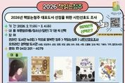 코리아타임뉴스 충북취재본부 | 청주시립도서관은 2026년 ‘책읽는청주’ 대표도서 선정을 위한 시민선호도 조사를 3월 4일까지 진행한다고 11일 밝혔다. 이번 선호도 조사는 청주시 시민과 독서전문가들이 추천한 291여권 가운데, 책읽는청주 추진위원회가 엄선한 아동·청소년·일반 부문별 5권씩 총 15권을 대상으로 실시한다. 아동부문 도서는 △이상권의 ‘29센티미터’ △백혜영의 ‘구구옥’ △고정순의 ‘난독의 계절’ △허교범의 ‘어린 변호사’ △성은경의 ‘우당탕탕 또경이’이다. 청소년부문 도서는 △백혜영의 ‘꿈을 걷는 소녀’ △성해나의 ‘두고 온 여름’ △최현진 ‘스파클’△김하연의 ‘시간을 건너는 집’ △추정경의 ‘열다섯에 곰이라니’이다. 일반부문 도서는 △문유석의 ‘나로 살 결심’ △최태규의 ‘도시의 동물들’ △김홍의 ‘말뚝들’ △장강명의 ‘먼저 온 미래’△황석영의 ‘할매’이다. 선호도 조사 결과는 대표도서 최종 선정을 위한 참고자료로 활용되며, 최종 대표도서는 3월 25일 개최되는 책읽는청주 추진위원회에서 결정될 예정이다. 참여는 청주시민 누구나 가능하며, 아동·청소년·일반 각