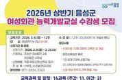 코리아타임뉴스 충북취재본부 | 음성군은 2026년 상반기 여성회관 능력개발교실 수강생을 모집한다. 이번 교육은 오는 3월 6일부터 12주간 진행되며 △재봉틀반 △라인댄스 △라떼아트 △바리스타자격증반 △떡 만들기 △헤어커트 △프랑스 자수 △민화 등 주·야간 총 14강좌로 구성돼 있다. 접수는 2월 9일부터 25일까지 선착순으로 이뤄지며, 음성군민 여성·남성 누구나 신청할 수 있다. 수강 희망자는 접수 기간 내 신분증을 지참하고 음성군 여성회관(2층)을 방문해 신청하면 된다. 수강료는 12주 기준 3만원으로 수강 신청 시 현금 납부이며 재료비는 개인 부담이다. 군 관계자는 “유익한 학습 경험을 통해 군민들의 삶의 질을 높일 수 있도록 최선을 다하겠다”며 “군민들의 수요를 반영한 특별 강좌에 많은 군민이 관심을 두고 참여하길 기대한다”고 말했다.