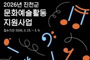 코리아타임뉴스 충북취재본부 | (재)생거진천문화재단은 지역 문화예술인의 자생력을 강화하고 군민의 문화 향유 기회를 확대하기 위해 ‘2026년도 진천군 문화예술활동 지원사업’ 참여 단체를 공개 모집한다고 밝혔다. 이번 사업은 전년 대비 확대된 총 5천800만 원 규모로 운영되며, 지원 분야를 △전문예술 △생활예술(동아리 포함)로 이원화해 보다 체계적이고 현장 중심의 맞춤형 지원체계를 구축한 것이 특징이다. 공모에 선정된 단체는 사업 유형에 따라 최대 300만 원에서 500만 원까지 활동비를 지원받게 되며, 오는 4월부터 11월까지 진천군 전역에서 공연, 전시, 교육, 체험 등 다양한 문화예술 프로젝트를 추진하게 된다. 신청 자격은 진천군에 소재한 5인 이상 문화예술 단체로, 접수 기간은 오는 3월 9일까지다. 신청은 방문 또는 이메일을 통해 가능하다. 이주원 생거진천문화재단 관계자는 “이번 지원사업이 지역 예술인들의 창작 기반을 더욱 공고히 하고, 군민이 일상 속에서 수준 높은 문화예술을 향유하는 계기가 되길 기대한다”며 “역량 있는 지역 예술단체들의 많은 관심과 적극적인 참여를 바란다”