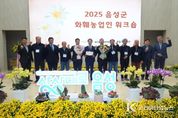 코리아타임뉴스 충북취재본부 | 음성군은 27일 농업기술센터 음성명작관에서 한국화훼농협과 음성군화훼생산자연합회 주관으로 화훼농업인 워크숍을 개최했다. 이날 조병옥 음성군수, 유석룡 한국화훼농협 조합장, 한경표 음성군화훼생산자연합회장과 관내 화훼농가 200여 명이 참석했으며, 유석룡 조합장은 지난해 기록적인 폭설 시 피해 농가 복구를 위해 헌신적으로 봉사한 공직자들을 대표해 조병옥 군수에게 감사패를 전달했다. 이어 음성군 화훼산업진흥지역 기본계획, 화훼 생산 최신 동향, 농업인이 알아야 할 노무 상식에 대한 특강과 회원 간 친목 행사가 마련돼 실질적이고 알찬 워크숍으로 진행됐다. 또한 플라스틱 꽃 사용근절을 위한 생화 사용, 시설하우스 고온과 폭설 대비 냉난방비 절감 제품, 고품질 화훼 생산을 위한 비료를 홍보하는 부대행사도 병행됐다. 행사에 참석한 한 화훼농가주는 “음성군의 화훼산업진흥지역에 대한 청사진과 평소 궁금하던 노무 상식에 대한 특강이 매우 유익했다”며 “평소 바쁜 일상으로 인해 못 보던 이웃 농가들과 즐거운 하루를 보냈다”고 말했다. 조병옥 군수는 “군이 전국 최초 화훼산업진흥