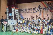 코리아타임뉴스 한장선 객원기자 | 강릉농악보존회가 9월 28일 충북 영동군에서 열린 ‘제66회 한국민속예술제’ 청소년부 경연대회에서 강원특별자치도 대표로 출전하여 대상인 대통령상 수상의 영예를 안았다. 이번 경연에는 강릉시 관내 초중고교 학생 44명(초 34명, 중 9명, 고 2명)이 출연했으며, 경연장에 학부모 응원단 및 보존회 회원의 뜨거운 응원으로 예술제에 열기를 더했다. 학생들은 지난 7월부터 약 두 달여 간 무더위와 가뭄이라는 강릉의 어려운 상황 속에서도 굵은 땀방울을 흘리며 꾸준히 연습하며 경연을 준비했고, 그 결과 1위를 차지하여 대통령상 수상이라는 값진 성과를 거두었다. 이날 경연에서는 강릉농악의 대표적인 “농사풀이농악”을 선보였다. 이 농악은 과거 농사과정을 몸짓, 손짓으로 표현한 것이 가장 큰 특징으로 소, 볏짚 등 농사 과정의 다양한 소재들을 직접 몸으로 표현하여 하나의 연극이나 마임을 보는듯한 재미를 느낄 수 있다. 이번 경연은 임영민속연구회의 김남일 박사가 총 연출을 맡고, 이용신 전 서울노원구립예술단장이 고증을 담당해 완성도를 높였다. 한편, 올해 한국민속예술제는 문화체육관