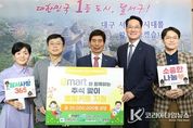 코리아타임뉴스 한장선 객원기자 | 대구 달서구(구청장 이태훈)는 대구광역시사회복지협의회와 이마트로부터 추석맞이 명절키트 100세트(약 700만원 상당)를 기탁받았다고 29일 밝혔다. 이번 나눔은 복지 사각지대 해소와 한가위 이웃사랑 실천을 위해 마련됐다. 김석표 회장은 “달서구의 어려운 이웃들이 풍성한 명절을 보낼 수 있도록 작은 힘을 보태고자 했다”며 “앞으로도 이마트와 함께 지속적인 사회공헌 활동을 이어가겠다”고 말했다. 이태훈 달서구청장은 “어려운 여건 속에서도 따뜻한 나눔을 실천해 주신 대구광역시사회복지협의회와 이마트에 감사드린다”며 “소중한 후원품을 필요한 가정에 신속하고 투명하게 전달하겠다”고 전했다.
