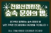 코리아타임뉴스 한장선 객원기자 | 세종특별자치시시설관리공단(이사장 조소연)은 오는 9월 27일부터 전월산국민여가캠핑장에서 '숲속 문화의 밤'프로그램을 정기 운영한다고 밝혔다. '숲속 문화의 밤'은 매월 넷째 주 토요일 전월산캠핑장 잔디광장에서 진행되며, 캠핑장을 이용하는 이용객이라면 누구나 부담없이 즐길 수 있는 행사를 운영한다. 특히 9월 첫 회차에는 지역 예술인 공연이 함께 마련되어 이용객들에게 특별한 가을밤의 추억을 선사할 예정이다. 이번 프로그램은 캠핑장 내 놀거리가 부족하다는 이용객의 의견을 반영해 기획된 것으로, 영화 상영과 공연을 통해 문화 향유 기회를 넓히고 이용객 모두가 즐길 수 있는 여가 문화를 조성하고자 마련됐다. 조소연 이사장은 “전월산캠핑장이 단순한 야영 공간을 넘어 문화와 여가를 함께 즐길 수 있는 열린 복합문화공간으로 발전시킬 것”이라며, “앞으로도 시민과 관광객 모두가 만족할 수 있는 다채로운 프로그램을 지속 발굴하겠다”고 말했다.