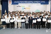 코리아타임뉴스 한장선 객원기자 | 제주특별자치도가 27일 오전 10시 도청 탐라홀에서 2025년 제주인재육성 장학금 장학증서 수여식을 열고, 제주 출신 고등학생 및 대학(원)생 222명에게 장학금을 전달했다. 제주평생교육장학진흥원(이사장 오영훈)이 추진하는'제주인재육성 장학금'은 학업 의지와 잠재력을 갖춘 도내 학생들이 학비 및 생활비 부담을 덜고 안정적으로 학업에 전념할 수 있도록 지원하는 사업이다. 이번 장학생 선발에는 총 491명이 지원해 평균 2.2대 1의 경쟁률을 보였으며, 성취·재능·희망장학금 세 분야로 나눠 진행됐다. 성취장학금으로는 학업 성적과 연구 실적이 뛰어난 국내 대학생 및 대학원생 120명을 선발했다. 재능장학금에는 문화·예술·체육·과학 분야에서 탁월한 능력을 보인 도내 고등학생 및 국내 대학생 29명, 희망장학금으로는 경제적 어려움을 겪는 도내 고등학생 및 국내 대학생 73명이 각각 뽑혔다. 올해 제주인재육성 장학생들에게는 총 3억 6,000만 원의 장학금이 지급된다. 성취장학금은 대학(원)생 최대 200만원 씩 등록금 범위 내에서 지급되며, 재능장학금 및 희망장