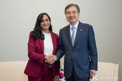 코리아타임뉴스 해외팀 | 조현 외교부 장관은 9월 25일 오후 유엔본부에서 아니타 아난드(Anita Anand) 캐나다 외교장관과 상견례를 겸한 회담을 갖고, 고위급 교류를 포함한 양국 관계 전반, 미래 실질 협력 방안, 지역 및 국제정세 등에 대해 의견을 교환했다. 조 장관은 올해 한국과 캐나다 신정부 출범 이후 6월 G7 정상회의 계기에 양국 정상회담 개최에 이어 이번 외교장관회담을 통해 양국간 고위급 교류가 지속되고 있어 기쁘다고 하고, 한-캐나다 '포괄적 전략 동반자(Comprehensive Strategic Partnership)' 관계를 보다 더 발전시켜 나가자고 했다. 아난드 장관은 캐나다가 인태지역에 대한 관여를 보다 확대해 나가는 데 있어 한국은 신뢰할 수 있는 파트너라고 하면서, 캐나다가 안보·경제 파트너십 및 에너지 공급망을 다변화하고, 안보·방산 역량을 발전시켜 나가는 과정에서 한국과 긴밀히 협력해 나가기를 바란다고 했다. 조 장관은 한반도 평화·안정을 위한 우리의 대북 정책을 설명하고, 우리의 노력에 대한 국제사회의 이해 제고 및 지지 확산을 위해 G7 의장국인 캐나다의 역할을 당부했다.