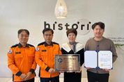코리아타임뉴스 김태훈 기자 | 영동소방서는 영동군 용산면에 위치한 휴게음식점 히스토리아를 다중이용업소 안전관리 우수업소로 지정해 현판식을 가졌다고 17일 밝혔다. 다중이용업소 안전관리 우수업소 선정은 영업주의 자율안전관리 체계를 유도하고 그에 따른 혜택과 함께 소방안전관리 책임의식을 심어주기 위해 매년 추진되고 있다. 영동소방서는 히스토리아 영업장 출입구에 안전관리 우수업소를 증명하는 인증 표지를 부착하고, 영업주에 대해 소방서장 표창장을 수여했다. 영동군 12번째 다중이용업소 안전관리 우수업소로 선정된 히스토리아는 향후 2년간 소방안전 교육이수와 화재안전조사가 면제되고 화재배상책임보험료 할인(보험회사 약관에 따름)의 혜택을 받게 된다. 한편 히스토리아는 소방, 건축, 전기 등 관련 법령 위반 및 화재 발생 사실이 없으며, 소방시설 유지관리의 적정성과 직원들의 화재예방 참여도 등에서 높은 평가를 받아 우수업소로 선정됐다. 이명제 소방서장은 “우수업소 인증은 시민이 믿고 찾을 수 있는 안전한 공간임을 의미한다”며 “앞으로도 업소의 자율적인 안전관리 정착을 지원하고, 지역사회에 안전문화가