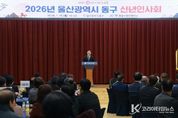 코리아타임뉴스 울산취재본부 | 울산 동구는 1월 15일 오전 10시 30분 동구청 2층 대강당에서 2026년 울산광역시 동구 신년 인사회를 개최했다. 이번 신년 인사회는 동울산청년회의소(회장 전종현)가 주관한 것으로 김종훈 동구청장을 비롯한 동구 지역 각급 기관·단체장 200여 명이 참석하여, 구정 발전을 위한 덕담과 화합의 시간을 나눴다. 이날 행사에서는 ‘AI에게 동구의 미래를 묻다’라는 주제로 인공지능 프로그램을 활용해 동구청 직원들이 직접 제작한, ‘다시 뛰는 심장, 2040 울산 동구’ 영상을 함께 시청하며 동구의 미래를 그려보는 흥미로운 시간을 마련했다. 김종훈 구청장은 지난 3년 반의 시간 동안 ‘더 잘 사는 동구’를 목표로, 구청과 각급 기관단체가 함께 동구 주민의 더 나은 삶을 위해 힘써 왔다”라며 각급 기관·단체장들에게 감사의 인사를 전했다. 또한 “앞으로 산업과 도시의 구조 자체가 급변하는 미래를 맞이하여 한 단계 더 도약하고 성장하는 동구를 만들기 위해 기관·단체·기업이 손잡고 미래의 힘찬 여정을 함께해 주시길 바란다”라고 말했다.