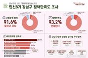 코리아타임뉴스 기동취재팀 | 꿈이 모이는 도시, 미래를 그리는 강남구 정책 만족도 조사에서 구정 운영에 대한 긍정 평가가 91.6%에 달하는 것으로 나타났다. 10명 중 9명이 “잘하고 있다”고 평가한 것이다. 특히 정책 전반에 대한 만족도는 93.2%로, 주민 체감도가 높은 생활 밀착형 정책들이 구정 신뢰도를 견인하고 있음을 보여줬다. 가장 성과를 내고 있다고 생각하는 분야는 교육·보육(23.1%), 최우선으로 추진할 분야로 경제·일자리(30.4%)를 꼽았다. 이번 조사는 ㈜국민리서치앤컨설팅그룹이 강남구 거주 만 18세 이상 성인 1,017명을 대상으로 2025년 10월 3일부터 14일까지 1대1 면접조사 방식으로 진행했다. 95% 신뢰수준에 표본오차는 ±3.1%포인트다. 정책 분야별로는 ‘즐거운 축제 도시’ 정책에 대한 만족도가 가장 높았고, ‘여가·문화시설 확충’ 분야는 ‘매우 만족’ 응답 비율이 32.6%로 가장 높았다. 여가 분야에서는 서울시 최대 규모의 탄천파크골프장과 전국 최대 스포츠클라이밍센터, 세곡체육공원, 시니어센터 신축 등 실용적인 시설 확충이 긍정 평가를 끌어냈다. ‘일자리·경제 활성화’