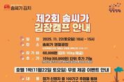 코리아타임뉴스 이아름 기자 | 영월군 상동읍의 청정 지역 김치 브랜드인 농업회사법인 솜씨가는 오는 11월 22일 토요일 오전 9시부터 오후 6시까지 제2회 솜씨가 김장캠프를 개최한다. 이번 행사는 김장 체험을 통해 지역 농산물의 우수성을 널리 알리고 지역 주민과 관광객이 함께 어울리는 상생의 장을 마련하기 위해 기획됐다. 김장캠프에서는 상동읍 전 주민을 초청해 식사를 대접하고 소규모 콘서트와 경품 행사 등을 진행하며 주민 화합의 분위기를 조성할 예정이다. 또한 지역 내 캠핑장과 연계해 외부 관광객에게 숙소를 제공함으로써 방문객 유치와 지역 관광 활성화에도 이바지할 계획이다. 행사에 필요한 절임배추 역시 지역 내에서 구매해 지역경제에 도움이 될 수 있도록 했다. 아울러 상동고 야구부 학생들과 함께 김장을 버무리는 체험을 진행한 뒤 완성된 김치를 관내 저소득층 가구에 지원할 예정이며, 김장 나눔을 통해 지역사회 돌봄과 따뜻한 나눔 문화를 확산하는 계기가 될 것으로 기대하고 있다.