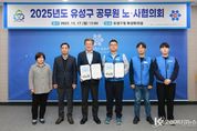 코리아타임뉴스 대전취재본부 | 대전 유성구는 지난 17일 유성구청 화상회의실에서 유성구 공무원노동조합(위원장 김수영)과 직원의 후생 복지 증진과 근무 환경 개선을 위한 ‘공무원 노사협의회’를 개최했다. 이번 협의회에서는 ▲6대 암 진단 직원 지원금 신설 ▲사회복지 업무 담당 직원 민원 업무 수당 지급 ▲공무원노조 문화 행사비 증액 ▲장기 재직 휴가 이월 등 13개 안건을 논의했으며, 7개 안건에 대해 합의했다. 김수영 위원장은 “근무 환경 개선을 위해 노력해 주신 사측에 감사드린다”라며 “노사 간 지속적인 소통과 협력을 통해 직원들이 체감할 수 있는 변화가 이어지도록 노력하겠다”라고 말했다. 정용래 유성구청장은 “각 부서의 협력과 책임 있는 업무 수행이 여러 분야에서 우수한 성과로 나타나고 있다”라며 “직원들이 안정된 환경에서 역량을 발휘할 수 있도록 지원책을 지속적으로 마련하겠다”라고 말했다.