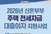 코리아타임뉴스 김택호 기자 | 당진시는 1월 19일부터 2월 13일까지‘2026년 신혼부부 주택 전세자금 대출이자 지원사업’ 신청자를 모집한다고 16일 밝혔다. 2019년부터 매년 실시하고 있는‘신혼부부 주택 전세자금 대출이자 지원사업’은 신혼부부의 주거비 부담 완화 및 안정된 정주 여건 조성으로 혼인과 저출산 문제를 해결하고, 주거복지 향상을 도모하기 위한 사업이다. 올해는 80가구 지원을 목표로, 전세자금 대출 잔액의 2% 내에서 연 1회 최대 150만 원까지 지원한다. 신청 자격은 공고일(2026.1.12.) 기준 중위소득 180% 이하(2인 기준 7,559,000원)를 충족하여야 하며, 관내 3개월 이상 거주 중인 5년 이내(다자녀인 경우 7년 이내) 혼인신고 한 신혼부부이다. 주택기준은 당진시 관내 주거용 주택이고 금융권 전세자금 대출 용도에‘주택’,‘임차’,‘전세’ 등으로 명기된 경우이며, 일반·신용대출은 제외된다. 신청은 주소지 관할 읍면동 행정복지센터에 방문하면 된다. 제출 서류 등 자세한 사항은 당진시 누리집 고시공고 게시판에서 확인할 수 있다.