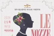 코리아타임뉴스 노승선 기자 | 원주시립교향악단은 오는 2월 5일 오후 7시 30분 백운아트홀에서 제103회 기획연주회 ‘피가로의 결혼’을 개최한다. 시립교향악단은 정주영 상임지휘자의 지휘 아래, 바리톤 김영광, 소프라노 전큰별, 베이스 강동윤 등 한국예술종합학교 성악 및 예술사 전공 학생들과 협연해 오페라 ‘피가로의 결혼’을 선보인다. 피가로의 결혼은 모차르트 3대 오페라 중 하나이며, 총 4막으로 구성돼 있다. 스페인 남부 안달루시아 지방의 수도 세비야를 배경으로 계급사회에서 시민사회로 전환되는 18세기 유럽 사회의 변화를 그린 작품이다. 연주회는 전석 무료로 진행되며, 사전 예매는 원주시 통합예약플랫폼에서 접수한다.
