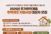 코리아타임뉴스 경기취재본부 | 남양주시는 26일부터 저소득층, 고령자, 아동 가구 등 주거 취약계층을 대상으로 ‘2026년 햇살·어르신 안전 하우징 사업’과 ‘2026년 아동 가구 클린서비스 지원사업’ 신청 접수를 시작한다고 밝혔다. 이번 사업은 경기도 주관으로 추진되는 주택 개조 사업의 일환으로, 시는 열악한 주거환경에 거주하는 저소득층 및 고령자 가구의 주거환경을 개선하고 주거 안정성을 확보해 시민의 삶의 질을 높이기 위해 추진한다. ‘햇살하우징 사업’은 기준 중위소득 50% 이하 가구를 대상으로 하며, 에너지 효율 향상과 냉·난방 환경 개선을 위한 △기밀성 창호·문 교체 △벽체 내단열 보강 △냉·난방기 설치·교체 등의 에너지 효율화와 관련한 주택 개보수를 가구당 500만 원 이내에서 지원한다. ‘어르신 안전 하우징’은 만 65세 이상 기초연금 수급자를 대상으로 진행한다. 고령자의 낙상 사고 예방과 이동 편의를 높이기 위해 △미끄럼방지 바닥재(타일, 패드 등) 작업 △가드레일 부착 △손잡이·경사로 설치 등 안전시설 보강 관련 개보수를 가구당 500만 원 한도로 지원한다. ‘아동 가구 클린서비스
