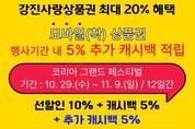 코리아타임뉴스 김태훈 기자 | “희망이 되는 소비, 함께 성장하는 경제”란 비전 아래 10개 부처와 3만 개 유통사가 참여하는 대규모 할인 축제인 ‘코리아 그랜드 페스티벌’이 개최된다. 지역상품권뿐만 아니라 온누리상품권, 농․축․수산물, 가전제품, 숙박․관광, 면세점 등 다양한 분야에서 가격 할인 및 쿠폰 발행 혜택을 제공한다. 기간은 오는 29일부터 11월 9일로 12일간 진행되며, 이에 지역경제 활성화를 위해 강진군도 참여한다. 강진군은 모바일(착) 강진사랑상품권의 할인율을 5% 인상해 행사기간에 총 20%(선할인 10% + 캐시백 5% + 추가 캐시백 5%)의 혜택을 지원한다. 할인율 인상에 대한 비용은 전액 국비로 지원되며, 지원되는 국비는 총 1억 2천만 원으로 예산 소진 시 조기 종료된다. 관내 모바일(착) 상품권은 음식점, 전통시장, 주유소, 미용실, 병원, 마트 등 지역 내 1,600여 개의 가맹점에서 사용할 수 있다. 자세한 가맹점 안내는 강진군 홈페이지 및 지역상품권 chak(앱) ‘가맹점 찾기’에서 확인할 수 있다. 군 관계자는 “지류(종이)