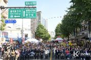 코리아타임뉴스 윤광희 기자 | 이순신 장군의 용기와 지혜가 깃든, 서울 중구가 지난 25일 이순신 생가터 인근에서‘2025 이순신축제’를 성황리에 개최했다. 올해 첫선을 보인 이번 축제에는 약 2만명이 방문해 세대와 국적을 넘어 모두가 함께 즐기며 ‘충무공 이순신 탄생지, 중구’를 새겼다. 축제는 을지로3가역에서 명보아트홀, PJ호텔에 이르는 거리를 무대로 펼쳐졌다. 해군홍보대의 비보잉 공연과 풍물놀이가 흥을 돋우며 개막을 알렸다. 이어 중구의 새로운 도시브랜드 ‘이순신1545 중구’가 공식 선포됐다. 이 브랜드는 이순신 장군의 탄생 연도 ‘1545년’에서 착안해 영웅을 품은 중구가 위대한 역사의 시작점임을 의미한다. 명보아트홀 광장에서는 주민 120여명이 참여한 협업 미술 프로젝트 ‘드로잉 이순신·드리밍 이순신’ 제막식이 열렸다. 각자가 색칠한 캔버스 조각을 이어 완성한 대형 소년 이순신의 그림이 공개되자 박수가 터져 나왔다. 이날 가장 열띤 호응을 모은 것은 ‘철인 이순신 콘테스트’였다. 동별 단체전에서는 이순신 장군의 해전을 연상케 하는 로잉머신 1,545m 완주전이 펼쳐졌다. 외국인 주민도 참여해 화