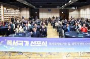 코리아타임뉴스 기동취재팀 | 파주시는 지난 11일 파주출판도시 지혜의숲 대회의실에서 시민과 도서관·교육·출판 관계자 등 200여 명이 참석한 가운데 ‘파주시 독서국가 선포식’을 개최했다. 이번 선포식은 지난 1월 국회의원회관에서 열린 ‘독서국가 선포식 및 독서국가 추진위원회 출범식’의 취지에 발맞춰 마련된 행사로, 인공지능(AI) 시대에 대응하는 독서교육의 국가적 전환 움직임에 적극 동참하기 위해 기획됐다. 특히 대한민국 출판문화산업을 선도해온 파주출판도시에서 개최되어 ‘책의 도시’파주의 위상을 다시 한번 확인하는 계기가 됐다. 이날 행사에서는 ▲전 세대 독서문화 확산 ▲학교·도서관·가정·지역사회가 함께하는 지속 가능한 독서 생태계 구축 ▲출판 및 문화산업 존중과 지식·콘텐츠 선순환 기반 강화 ▲경청과 토론이 살아있는 시민사회 구현 ▲독서를 통한 미래 준비 등의 내용을 담은 선언문이 발표됐다. 이어 진행된 대형 붓글씨 시연은 독서국가를 향한 파주의 의지를 상징적으로 표현하며 참석자들의 큰 박수를 받았다. 행사장에는 선언의 의미를 되새기려는 시민들의 발걸음이 이어졌고, 독서에 대한 높은 관심과 공감대를 확인할 수
