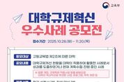 코리아타임뉴스 사회팀 | 교육부는 10월 28일부터 11월 20일(목)까지 대학을 대상으로 ‘2025년 대학규제혁신 우수사례’를 공모한다. 그간 교육부는 ▴대학 교원 제도의 유연성 확대(전임교원 교수시간 자율 운영 등), ▴학사 운영의 자율성 향상(소단위 전공과정 및 전공자율선택 운영 등), ▴운영 중인 대학에 대한 설립·운영 기준 완화를 통한 학과 개편 지원, ▴첨단산업 분야 인재 양성을 위한 학생 정원 확대 등 대학의 자율적 혁신을 지원해 왔다. 이번 공모전은 대학규제혁신으로 개선된 제도를 대학에 적용한 혁신적인 사례를 찾고, 이러한 사례들을 타 대학에 전파하고 공유하기 위해 마련되었다. 동 공모전은 ’24년부터 시작되었으며, 작년에는 울산대학교의 ‘지역 내 멀티캠퍼스 구축 및 운영’, 부산외국어대학교의 ‘전공자율선택제 전면 시행’, 경상국립대학교의 ‘소단위 전공 과정 근거 마련’이 대상과 우수상을 수상한 바 있다. 올해 공모전에는 현장에서 규제 개선의 효과를 체감하는 데 시간이 소요될 수 있음을 감안하여, 계획 수립 단계부터 현재 추진 중인 혁신 사례도 응모할 수 있도록 하였다.
