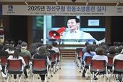 코리아타임뉴스 사회팀 | 수원시 권선구는 지난 28일 수원남부소방서(서둔119안전센터)와 권선구 직원들과 함께 공공기관 합동소방훈련을 실시했다. 이날 훈련은 구청 전 직원을 대상으로 실시했으며, 화재 대피 요령 동영상 시청 후 실제 화재 발생 시 자위소방대의 화재대응 역할을 수행하는 방식으로 진행됐다. 훈련 내용은 구청 내에서 화재가 발생한 것으로 가정하여 유도반, 구조반, 진압반, 지휘반으로 편성된 자위소방대가 반별 역할 수행을 통해 직원 및 내방객들의 안전하고 신속한 대피 유도 과정이 주요 내용이었으며, 대피 훈련이 끝난 후에는 소화기 사용법 및 화재 발생 시 행동 요령과 주의사항 등에 대한 안전교육이 진행됐다. 김종석 권선구청장은 “화재 등 응급상황에 대한 자위소방대의 역량을 향상시키고, 모든 직원들이 신속하게 대응할 수 있는 능력을 강화해 나갈 것이다. 앞으로도 정기적인 소방훈련과 지속적인 교육을 통해 청사 안전관리에 힘쓰겠다”라고 말했다.