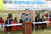 코리아타임뉴스 김택호 기자 | 대전시의회 조원휘 의장은 25일 갑천파크골프 1구장(유성구 탑립동)에서 개최된 제15회 대전광역시협회장배 파크골프대회에 참석해 안전한 대회 진행을 기원하며, 일류 체육도시 대전 조성을 위한 정책적 관심과 지원을 약속했다. 이날 대회는 지역을 대표하는 단체·기관장, 임원 및 선수, 시민 등 350여 명이 참석한 가운데 시 협회장의 대회사, 주요내빈 축사, 기념촬영 등의 개회식을 마친 뒤 남녀와 시니어·일반부로 나눠 18홀 스트로크 방식의 본격적인 대회로 이어졌다. 조원휘 의장은 “대전에는 유등천, 갑천, 을미기공원 등 6곳, 총 99홀의 파크골프장이 운영되고 있으며, 시민들의 참여가 늘면서 이제는 파크골프가 대전의 대표적 생활체육으로 자리잡았다”면서, “시민들의 관심과 수요가 커지는 만큼 동구 용운동에 2026년 12월까지 4,600여 평, 성북동에 2029년까지 최대 90홀 규모의 파크골프장이 조성되는 등 대전시의회는 시민들의 체육인프라 조성에 많은 노력을 기울이고 있고, 앞으로도 시민 모두가 파크골프를 비롯한 다양한 생활체육을 언제, 어디서나 즐길 수 있도록 의회 본연의 역할에 최선을 다하겠