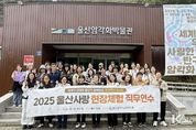 코리아타임뉴스 사회팀 | 울산광역시교육연수원(원장 한현숙)은 25일 울주군 대곡리와 천전리 일원에서 유치원, 초중등 교원 40명을 대상으로 ‘울산 사랑 현장 체험 직무연수’를 진행했다. 이번 연수는 ‘반구천의 암각화’를 중심으로 탐방하며 울산의 지역 문화유산에 대한 이해를 넓히고, 지역을 연계한 미래 교육의 기반을 마련하고자 마련됐다. 우신고 이현호 교사의 해설과 함께 연수생들은 울산 암각화 박물관, 울주 천전리 명문과 암각화, 대곡리 반구대 암각화를 둘러보며 암각화에 표현된 선사 문화의 교육 의미를 살펴봤다. 이어 울주군에 있는 숲 요가 명상 센터에서 ‘치유와 회복의 요가 명상’ 체험과 ‘혼합(퓨전) 국악 공연’을 관람했다. 연수생들은 기초 요가 동작과 호흡법을 배우고, 울산 이야기를 소리로 풀어낸 ‘춤추는 고래’ 등의 공연을 즐겼다. 연수에 참여한 교원은 “이번 연수는 우리 지역 문화유산의 가치를 깨닫는 소중한 경험이었다”라며 “현장 체험 연수로 지역과 연계한 교육을 실천할 역량을 기를 수 있었다”라고 말했다. 연수원 관계자는 “이번 연수로 선사유적의 가치를 느껴보는 시간이 됐길