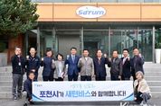 코리아타임뉴스 박찬식 기자 | 포천시는 지난 29일 선단동 소재 욕실가구 전문기업 ‘새턴바스’를 방문해 기업 의 애로사항을 청취하고 현장 의견을 수렴하는 등 소통 행정을 이어갔다. 이번 방문에는 백영현 포천시장을 비롯해 기업지원과장, 선단동장, 경기대진테크노파크 안준수 원장, 이미선 공동주택허가팀장, 김영철 선단7통장 등이 참석했으며, 정인환 대표이사를 비롯한 임직원들이 함께했다. 새턴바스는 2019년 아이에프 디자인상(IF Design Award) 금상, 2021년 글로벌 강소기업 선정, 굿 디자인 코리아(Good Design Korea) 중소벤처기업부 장관상 등을 수상한 국내 대표 욕실가구 전문 기업이다. 최근에는 자체 개발한 ‘모듈러 욕실’을 재건축 조합 아파트 등에 공급하며 디자인 경쟁력과 기술력을 기반으로 시장을 확대하고 있다. 정인환 새턴바스 대표이사는 “우리 기업은 국내외에서 제품의 품질과 디자인 우수성을 인정받고 있다”며 “앞으로 포천의 주거·건축 분야에서도 지역에서 생산된 우수한 제품이 적극 활용될 수 있기를 기대한다”고 말했다. 백영현 포천시장은 “지역 기업이 성장하고 그 제품이