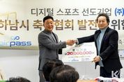 코리아타임뉴스 기동취재팀 | 디지털 스포츠 솔루션 선도기업 ㈜에어패스가 하남시 체육 발전의 근간을 마련하고 지역사회와의 실질적인 상생을 실천하기 위해 하남시 축구협회에 후원기금을 전달했다고 밝혔다. ㈜에어패스는 지난 10일 진행된 후원기금 전달식을 통해 하남시 축구협회에 성금을 기탁하며 지역 체육계에 활력을 불어넣었다. 이번 후원은 단순한 일회성 지원을 넘어, 하남시 축구 동호인들의 활동 저변을 넓히고 미래의 주역인 유소년 축구 꿈나무들이 보다 안정적인 환경에서 훈련에 매진할 수 있는 육성 토대를 조성하기 위해 마련됐다. ㈜에어패스와 하남시 축구협회는 이번 전달식을 기점으로 지역 내 축구 문화 확산과 체육 인프라 강화를 위한 다각적인 협업 체계를 구축하고, 긴밀한 파트너십을 이어가기로 약속했다. 이날 행사에는 이현재 하남시장을 비롯하여 하남시 축구협회 주요 관계자들이 대거 참석해 자리를 빛냈다. 참석자들은 지역 체육 발전을 위한 민관 협력의 중요성에 깊이 공감하며, 기업의 사회적 책임 활동이 지역 공동체 활성화에 미치는 긍정적인 의미를 다시 한번 되새겼다. 임종호 ㈜에어패스 대표이사는 이 자리에서